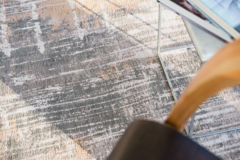 Streaks: Tæppets design er inspireret af Sandy shores i New Jersey og Long Island som er dækket af vinterens storme, samt udformning af krusninger og striber i sandet, så det ligner et abstrakt billede. Over et århundrede af færdigheder og håndværk er vævet ind i hvert tæppe Louis de Poortere producere.