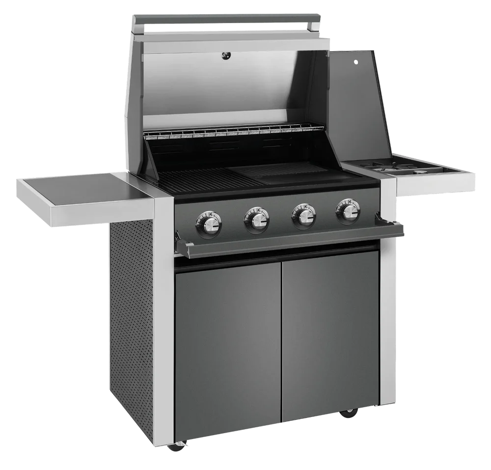 Denne moderne australske Barbecue fra 1700 serien, kommer med et helt nyt design. Kontrolpanelet er skjult når grillen ikke er i brug. Frontpanelet klappes ned når grillen skal bruges, og fungerer hermed som ekstra hylde til afsætning. Modellen leveres både til indbygning eller med underskabe i rustfrit stål. Låget er med dobbelt lag og har integreret temperaturmåler. Din familie og venner vil elske de saftige og sprøde retter du kan lave på denne BBQ.