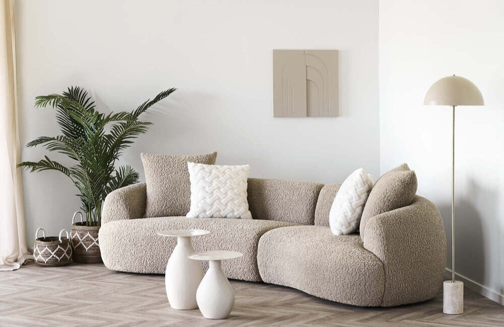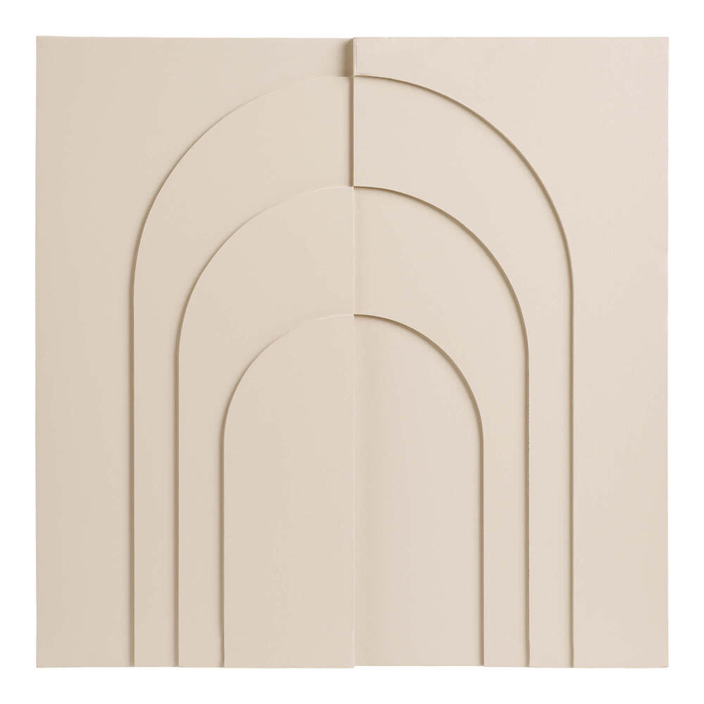 Beigefarvet vægdekoration.