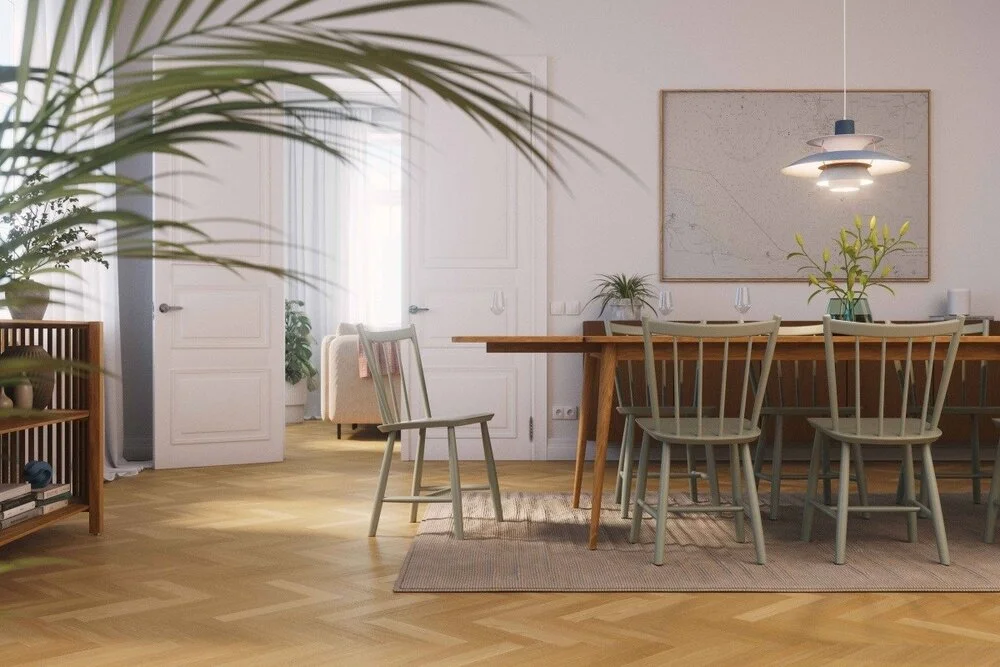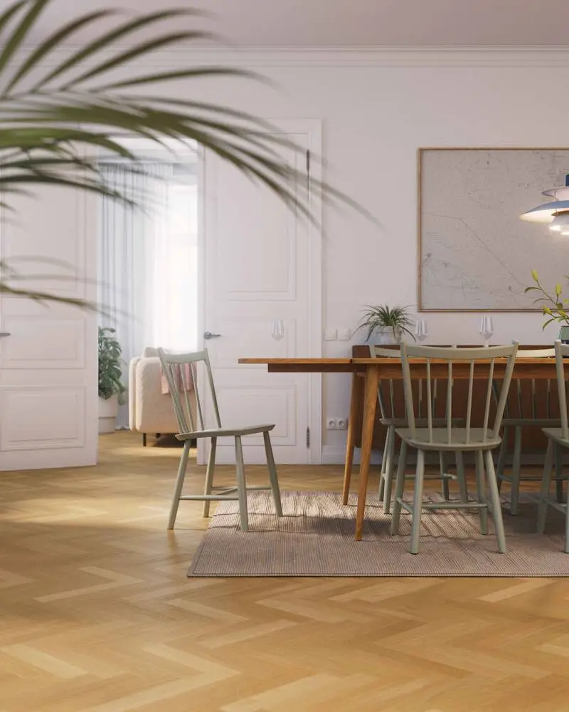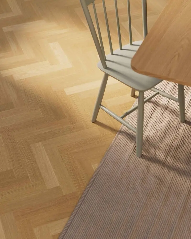 Autentisk og tidløst sildebensmønster. Stockholm er et slående Woodura Herringbone 3.0-gulv, der fremkalder en ægte fornemmelse af naturen. Med en beroligende naturlig nuance og en harmonisk Select-sorteringen er det det ideelle grundlag for mange forskellige indretningsstilarter. Det klassiske format skaber et tidløst mønster, der er perfekt til at tilføje et elegant touch. Dette gulv er fremstillet af FSC-certificeret europæisk eg og færdigbehandlet med en klasse 33 pro mat lak, hvilket gør det exceptionelt holdbart – perfekt til både erhvervs- og boligmiljøer. Den avancerede overfladebehandling sikrer nem vedligeholdelse og giver samtidig suveræn beskyttelse mod pletter.