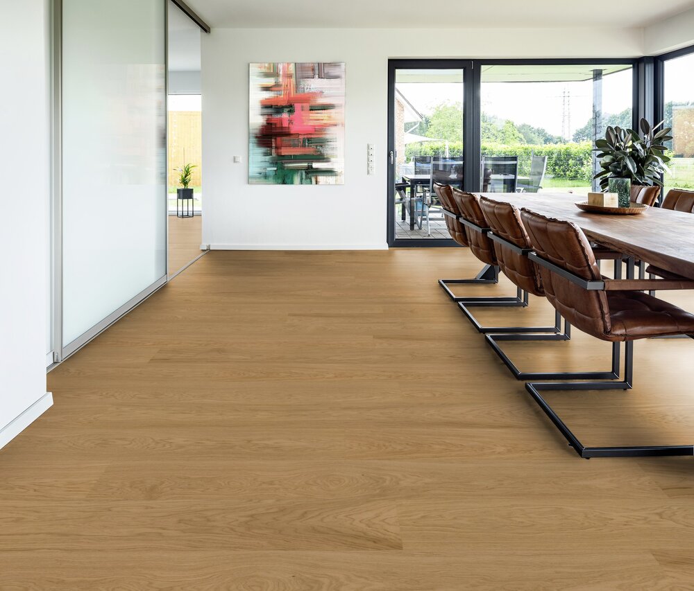 Designlag af ægte træ. Et finérlag i ægte træ, der giver gulvet sit naturlige og autentiske udtryk.