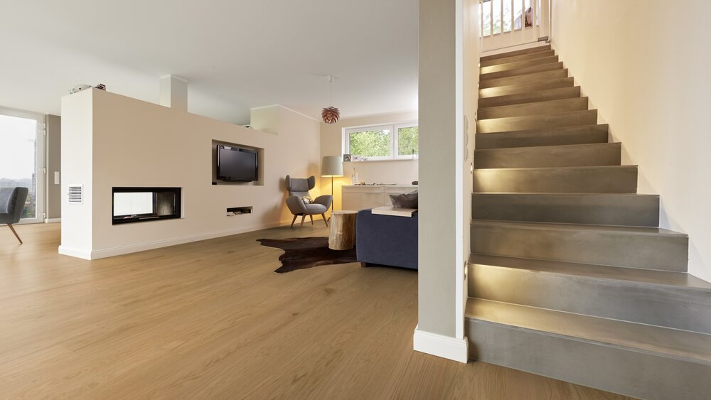 Ekstra træpulverlag. Et ekstra slidlag, der øger holdbarheden og styrker gulvets opbygning.