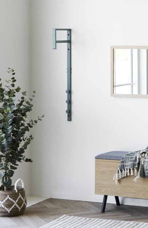 Grønt tøjstativ i metal.