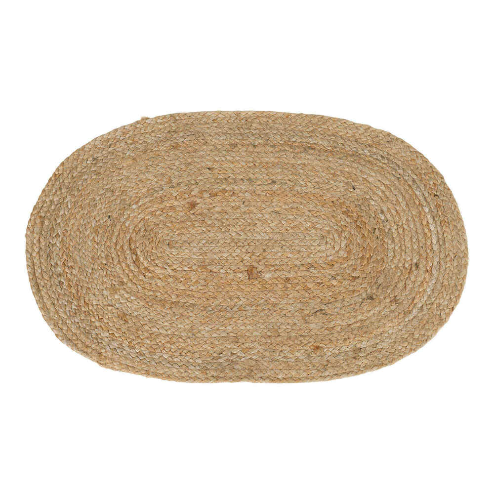 Oval naturfarvet dørmåtte i flettet jute.