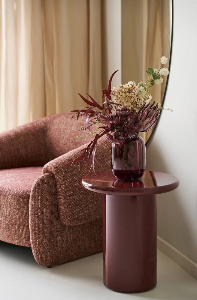 Hjørnebord i farven bordeaux.