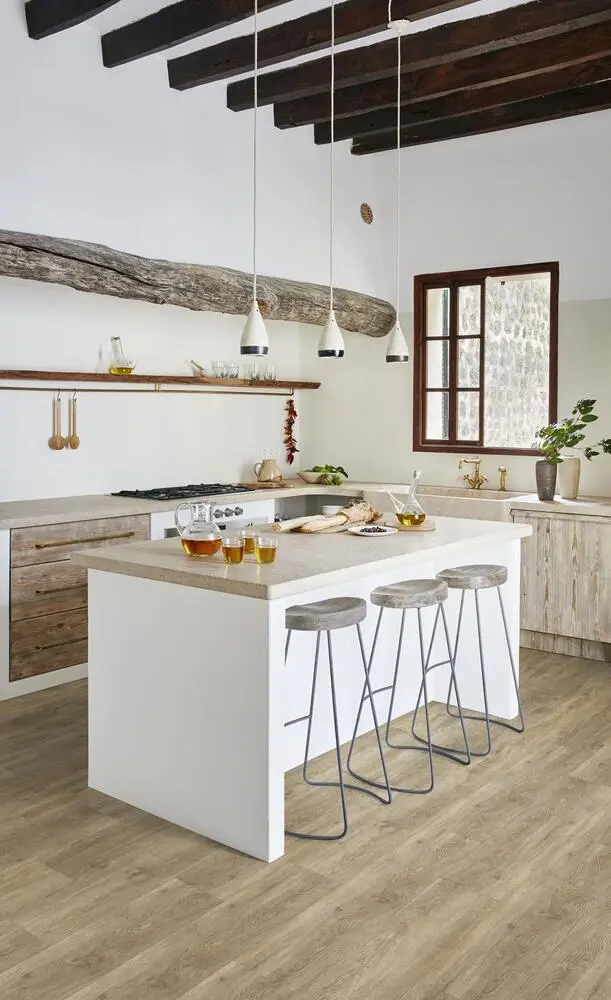 Andre produktoplysninger: Til flydende og limfrie montering i bolig og offentlig rum. Maksimal holdbarhed og stabilitet gennem den stive SPC-kerne og det unikke 5G click-system, der muliggør nem installation ved at klikke gulvene sammen. Lavet af vinyl der er fri for phthalater og har IXPE lydreducerende skumbagside, der effektivt reducerer og kontroller støj. Overfladebehandlet med en stærk keramisk belægning, der er modstandsdygtig overfor slid, ridser og vand. Kan monteres ovenpå eksisterende gulve som gør det ideelt til renoveringsprojekter.