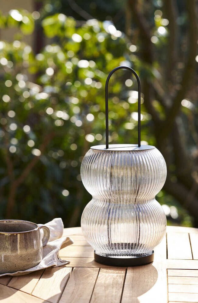 Sort lanterne i metal og glas.