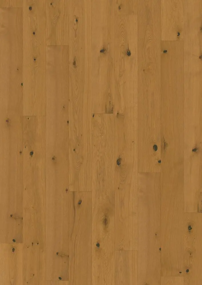 Eg Pepper plank, dette røgede egetræsgulv tilbyder et dristigt og rustikt design. De rige, mørke toner med en dyb farve, der minder om peber, fremhæves af naturlige knaster og en struktureret åre. Eg Peppers robuste karakter tilfører dybde og varme, hvilket gør det til et ideelt valg til et rum med en krydret stil og naturlig charme. Farvet produkt, synlig forandring over tid