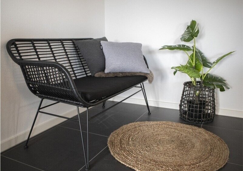 Naturfarvet flettet tæppe i jute.