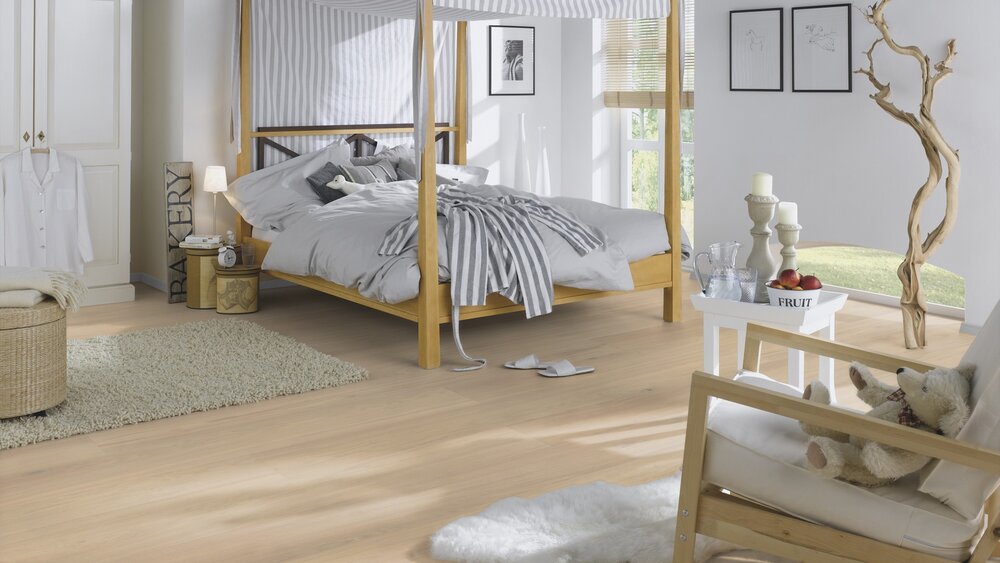 Skab en imponerende rumfornemmelse. De ekstra brede egetræsplanker kommer særligt til deres ret i større rum. Her – som med de brede planker – fremhæver den ekstra matte overflade egetræets naturlige udtryk og understøtter den autentiske charme i europæisk eg.