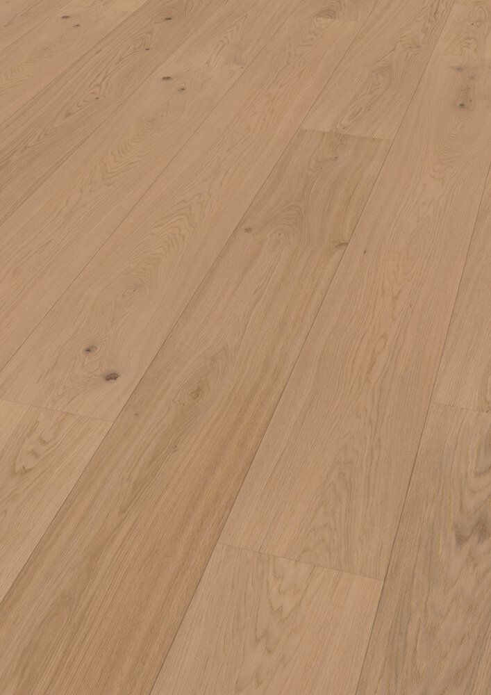 Skab en imponerende levende følelse. De ekstra brede egeplanker i formatet 270x2375 mm. kommer til deres ret især i større rum. Her, som ved de brede planker, understreger det ekstra matte look, også det naturlige udseende af europæisk eg.
