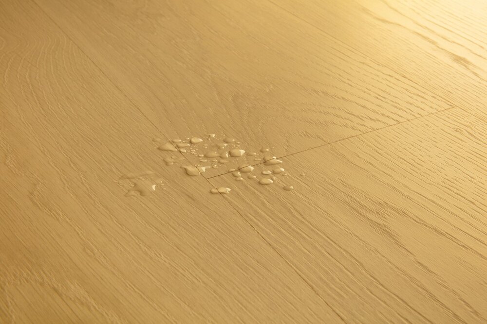 Vandresistensgaranti: Quick-Step giver 10 års garanti på vandresistensen, hvilket betyder, at gulvet tåler stående vand i op til 24 timer uden at tage skade. Det gør gulvet ideelt til rum som køkken, entré og badeværelse, hvor der ofte forekommer fugt eller spild – dog ikke egnet til brug i bruseniche eller andre områder med konstant vandpåvirkning.