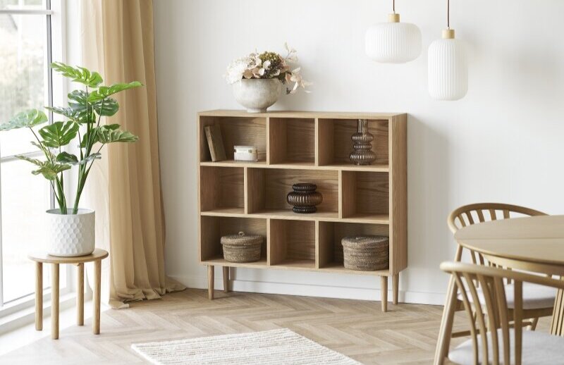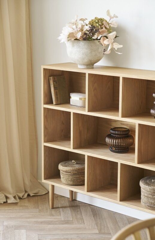 Bog reol i egefiner naturfarvet.
