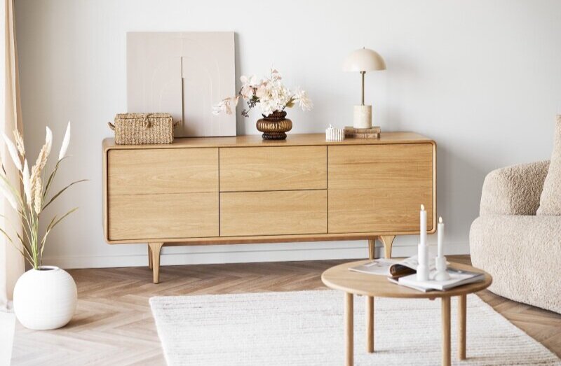 Naturfarvet egetræsskænk.