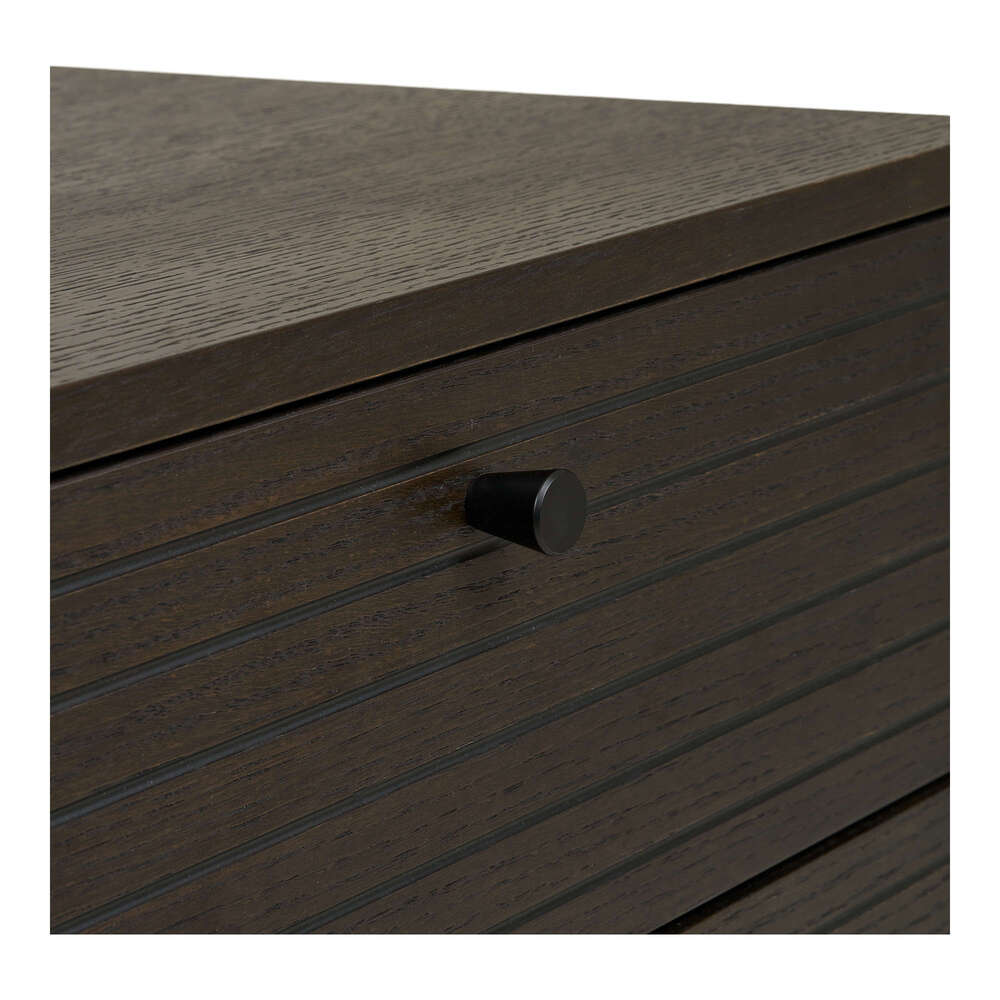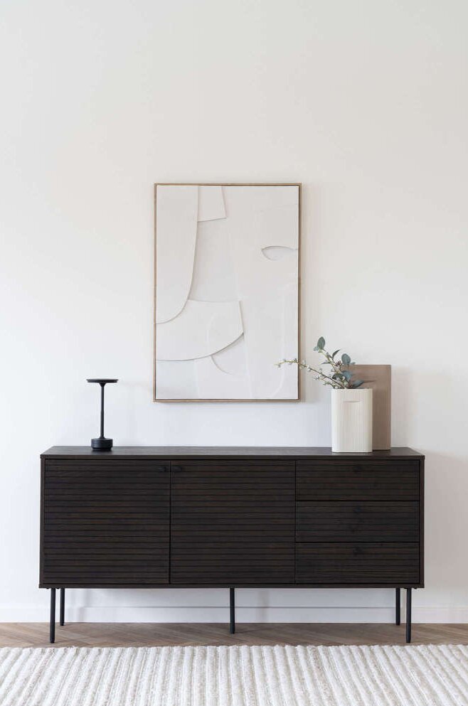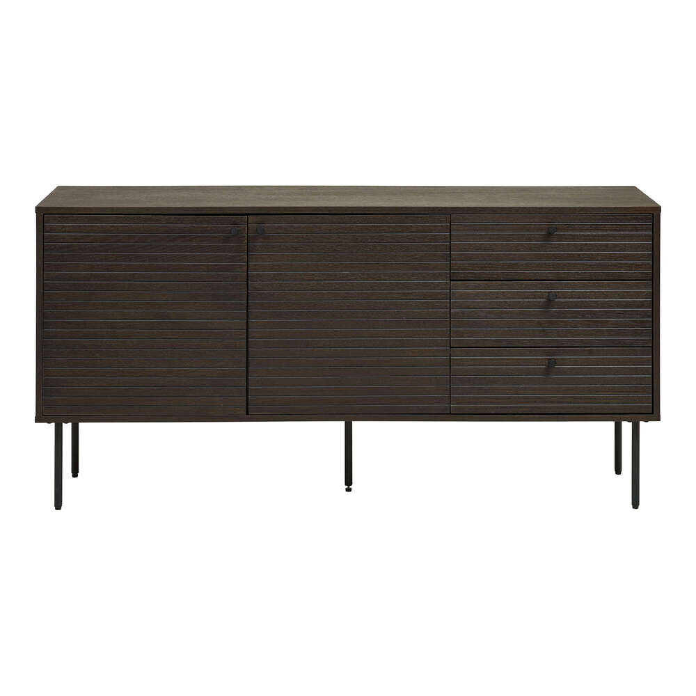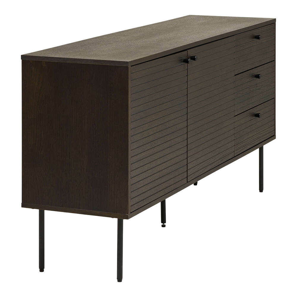 Skænk med 3 skuffer, 2 låger i smoked egefiner og sorte metalben.