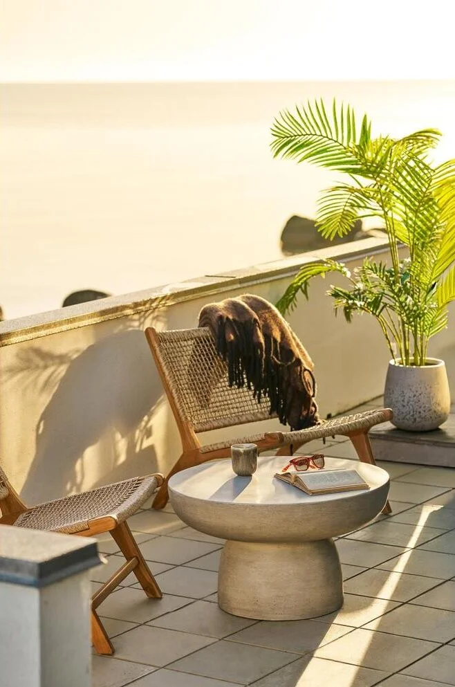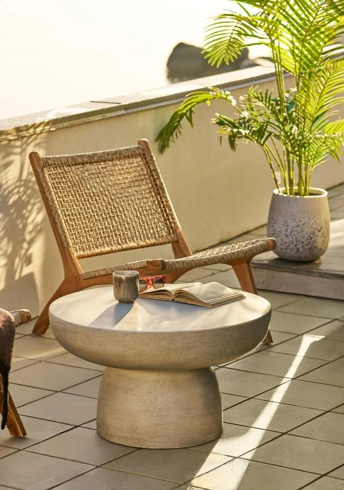 Sofabord i en skulpturel for lavet i grå fiberclay.