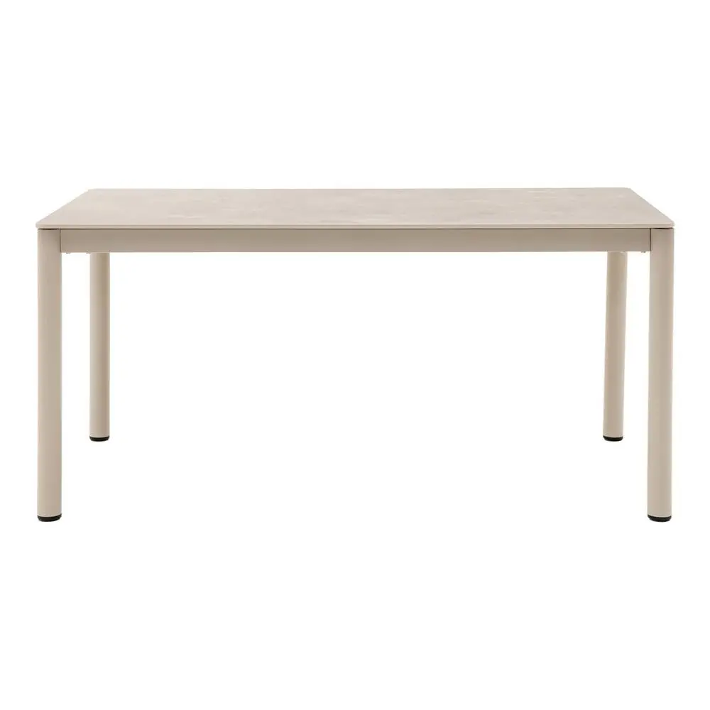Spisebord med aluminiumstel og sandfarvet keramikbordplade