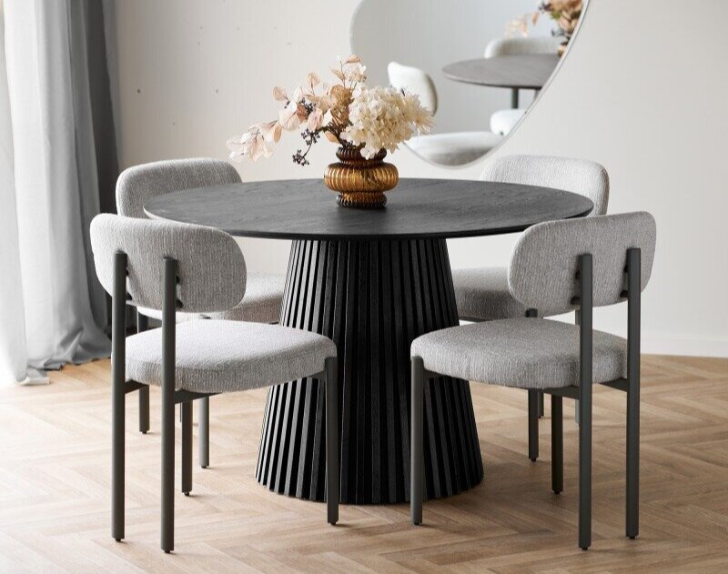Rundt spisebord i sort egefiner.