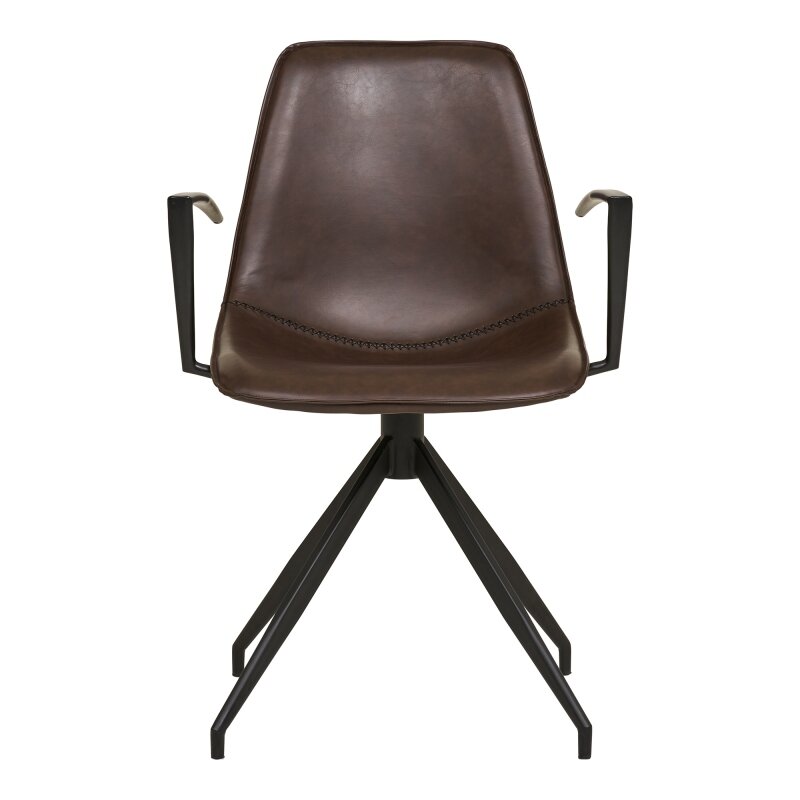 Mørkebrun spisebordsstol med drejefod i PU-læder og armlæn.