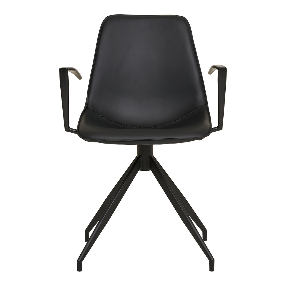 Sort spisebordsstol med drejefod i PU og armlæn.