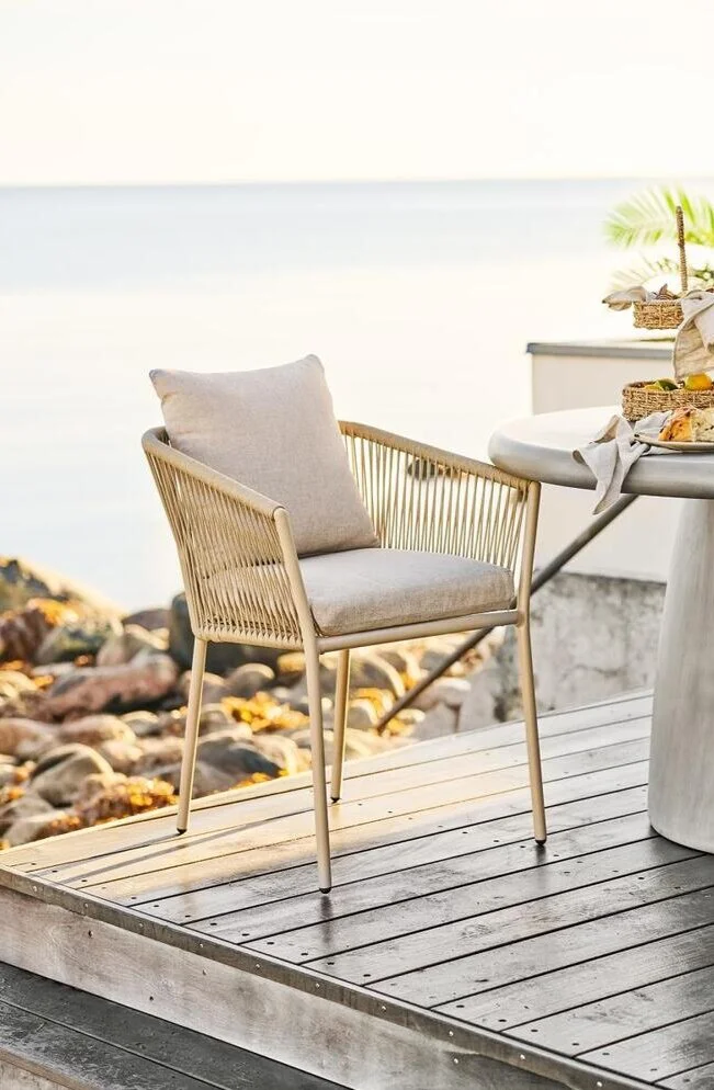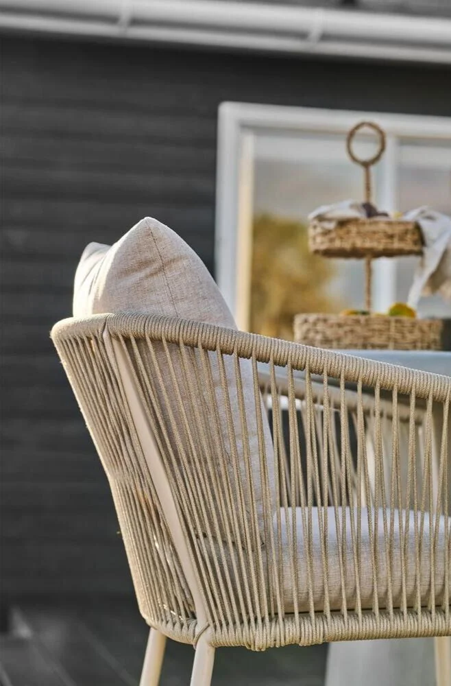 Sandfarvet spisebordsstol i aluminium inkl. sandfarvet hynde.