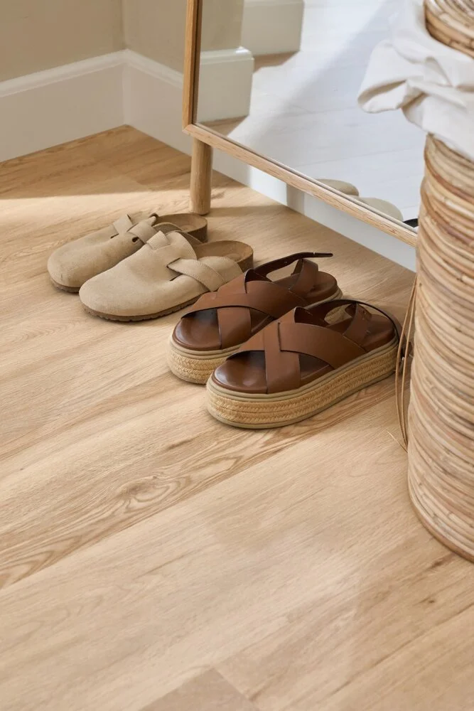 Barbados er et fantastisk nyt vinylgulv, der tilbyder endnu bedre komfort og en lyddæmpning på hele 21 dB. Gulvet kommer i en smuk og levende sortering med lyse, naturlige nuancer. Premium udmærker sig ved, at det - udover den fantastiske akustik og komfort - har en enestående overflade. Den ultramatte finish får gulvet til at ligne et olieret trægulv, hvilket suppleres af en naturtro 2D-overflade med knaster og åretegninger. Gulvet kan monteres i næsten alle rum i boligen, da det er vandafvisende og nemt at rengøre. Med sin høje slidstyrke er det særligt velegnet til rum med meget fodtrafik eller steder, der har brug for bedre akustik. Beregn skærespild på ca. 5%.