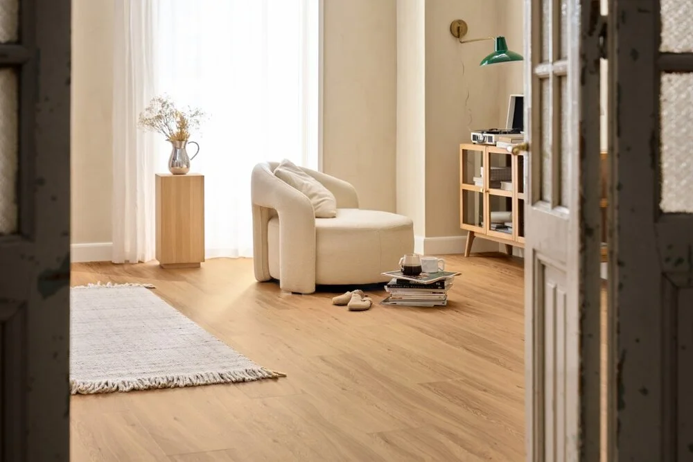 Colombia er et fantastisk nyt vinylgulv, der tilbyder endnu bedre komfort og en lyddæmpning på hele 21 dB. Gulvet kommer i en smuk og levende sortering med mørke, naturlige nuancer. Premium udmærker sig ved, at det - udover den fantastiske akustik og komfort - har en enestående overflade. Den ultramatte finish får gulvet til at ligne et olieret trægulv, hvilket suppleres af en naturtro 2D-overflade med knaster og åretegninger. Gulvet kan monteres i næsten alle rum i boligen, da det er vandafvisende og nemt at rengøre. Med sin høje slidstyrke er det særligt velegnet til rum med meget fodtrafik eller steder, der har brug for bedre akustik. Beregn skærespild på ca. 5%.