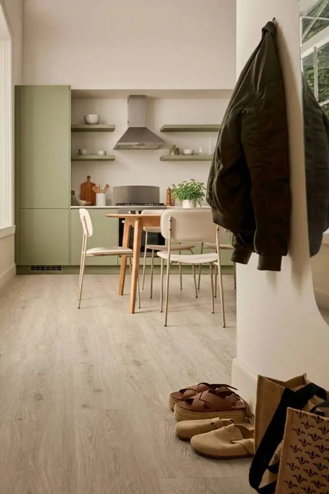 Novego Urban Grey Oak er i en levende sortering i lyse grålige nuancer. I vinylplankerne ses egetræets naturlige struktur med knaster og åretegninger, som kommer til karakter gennem 3D overfladen. Novego Classic kan monteres i næsten alle rum i boligen, da gulvet er vandafvisende og nemt at rengøre. Gulvet har en høj slidstyrke, som gør det velegnet i rum med meget fodtrafik eller i rum, hvor man ønsker at forbedre akustikken. Beregn skærespild på ca. 5%.