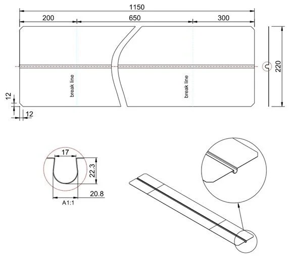 Størrelse: Ø20 X 1150 X 220 X 0,4 mm.