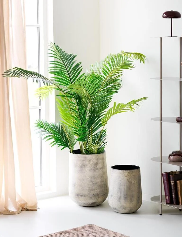Beigefarvet metal krukker. Unik og håndlavet krukker som kan variere i struktur.