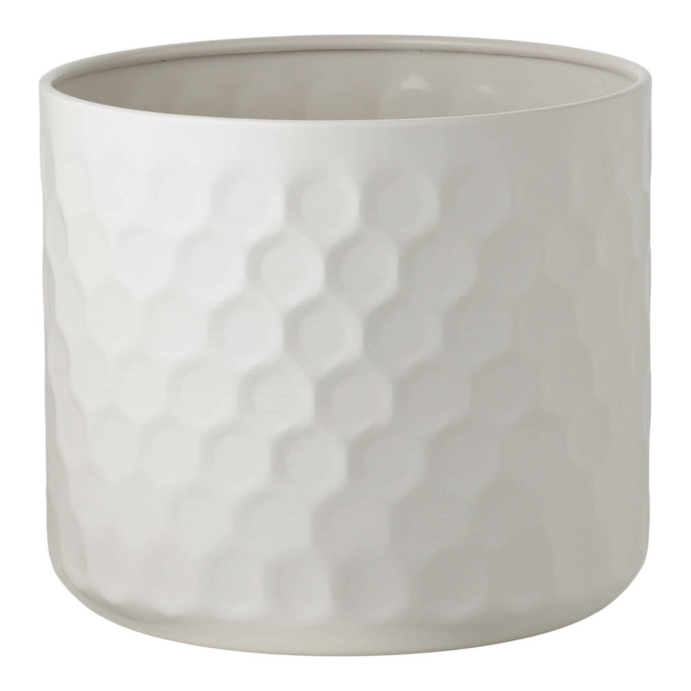 Hvid rund urtepotte i stål.