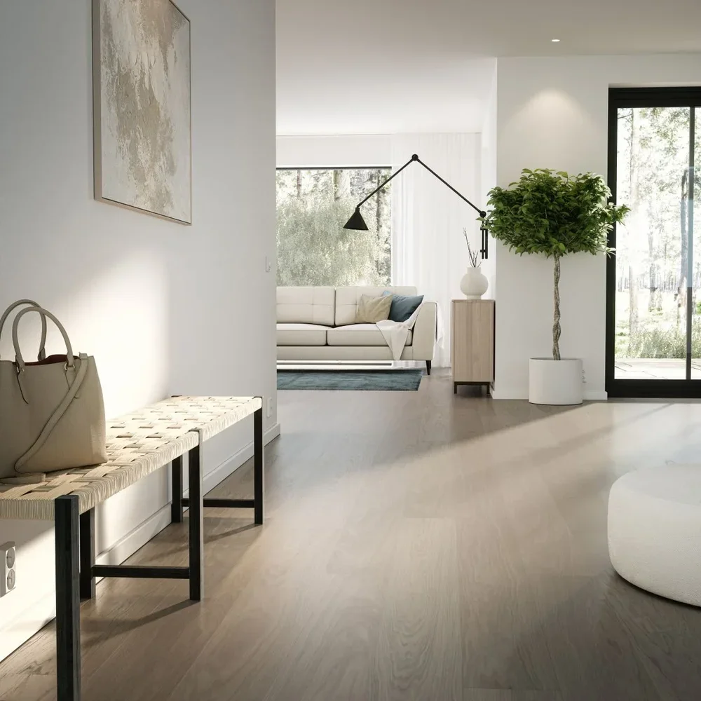 Et velbalanceret gulv. Gryby er et smukt, matlakeret gulv i hærdet træ i nuancen Earth Grey, som gør sig godt i kombination med sarte farver. Earth Grey er et elegant valg til et jordnært hjem, og sorteringen Select er med til at skabe et rent og harmonisk udseende. Dette klasse 33-produkt er fremstillet af FSC-certificeret europæisk eg og er ekstremt slidstærkt og derfor velegnet til rum med meget gangtrafik såsom hoteller, butikker, kontorer og caféer – eller et flittigt anvendt rum i dit hjem. Den matlakerede finish gør gulvet nemt at vedligeholde og beskytter samtidig mod pletter.