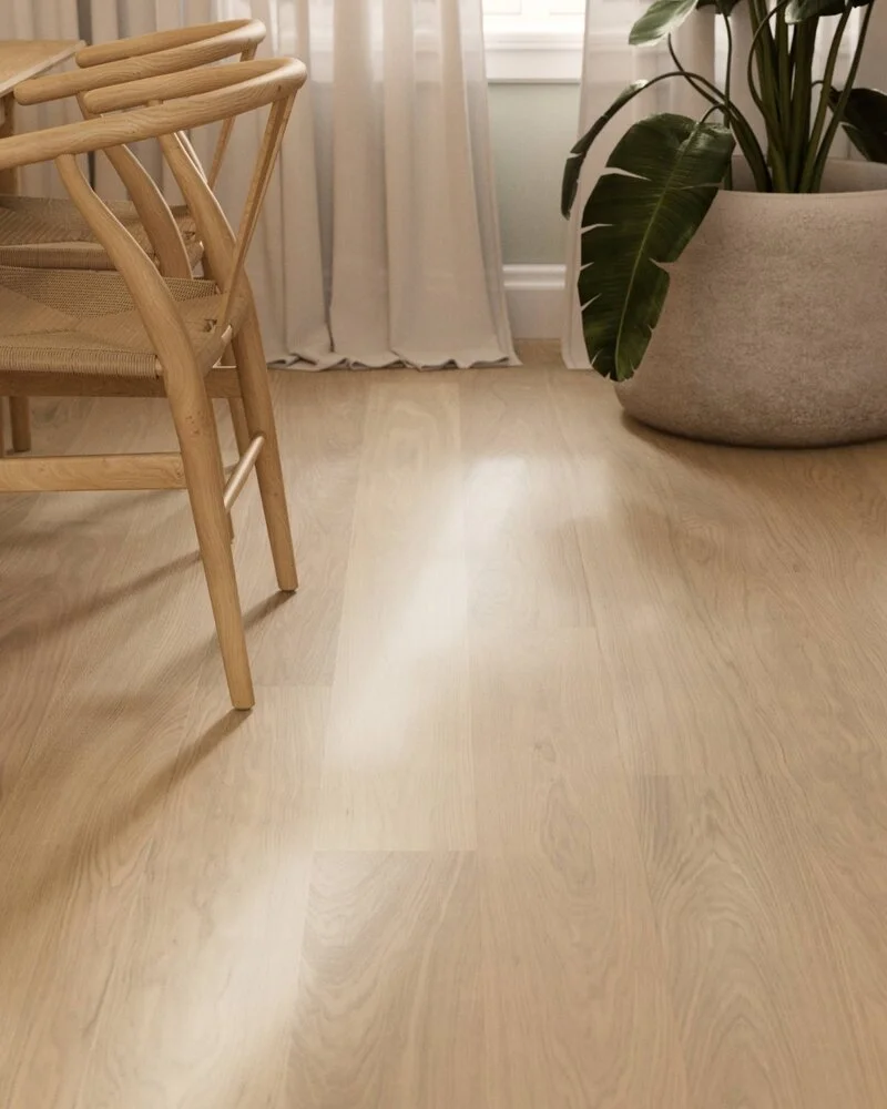 Frisk og minimalistisk gulvbelægning. Loshult er et matlakeret gulv i hærdet træ med en hvid nuance i et skandinavisk design, som er synonymt med minimalisme og rene linjer. Nuancen Misty White er stram og frisk, og sorteringen Select skaber et roligt og behageligt udtryk. Dette klasse 33-produkt er fremstillet af FSC-certificeret europæisk eg og er ekstremt slidstærkt og derfor velegnet til rum med meget gangtrafik såsom hoteller, butikker, kontorer og caféer – eller et flittigt anvendt rum i dit hjem. Den matlakerede finish gør gulvet nemt at vedligeholde og beskytter samtidig mod pletter.