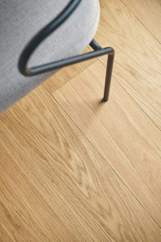 Stilrent og naturligt gulvdesign. Norrlia er et naturligt, matlakeret gulv i hærdet træ i et klassisk svensk design, som byder naturen indenfor i dit hjem. Nuancen Natural er beroligende, og sorteringen Select giver et rent og harmonisk udtryk. Dette klasse 33-produkt er fremstillet af FSC-certificeret europæisk eg og er ekstremt slidstærkt og derfor velegnet til rum med meget gangtrafik såsom hoteller, butikker, kontorer og caféer – eller entréen i dit hjem. Den matlakerede finish gør gulvet nemt at vedligeholde og beskytter samtidig mod pletter.