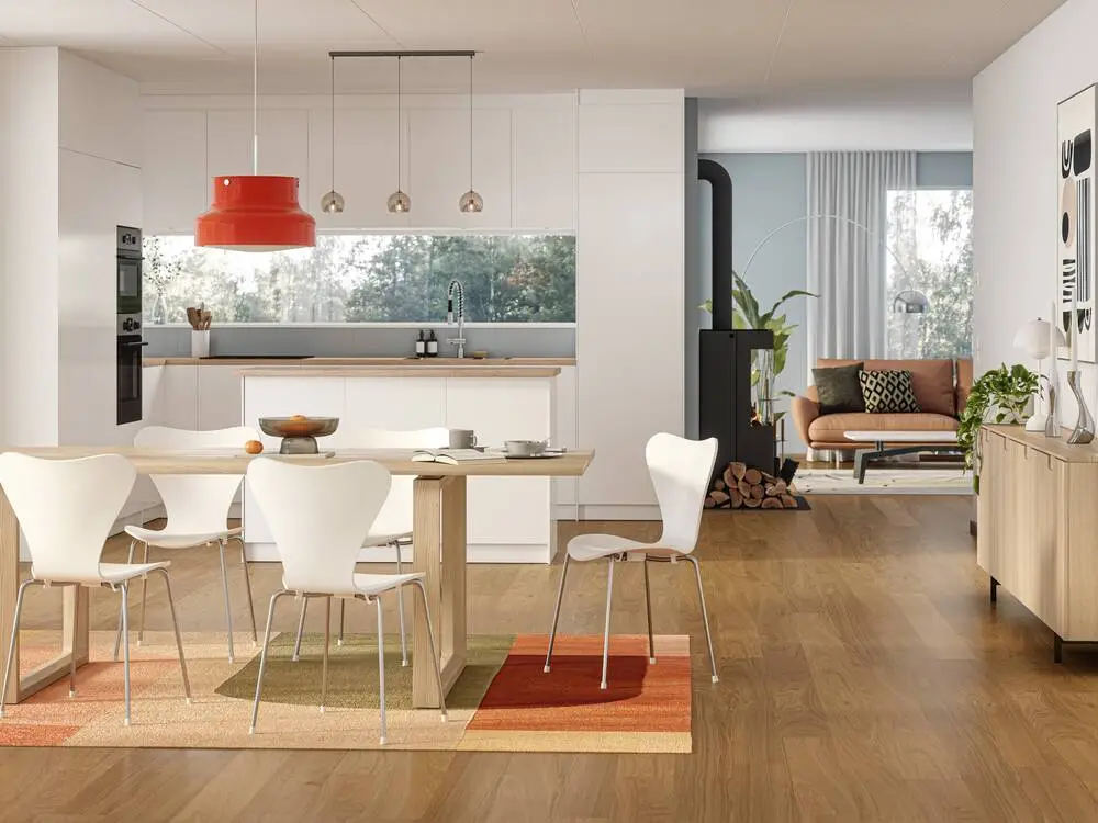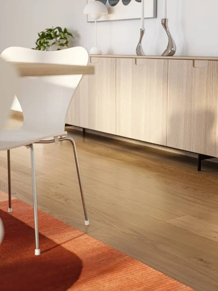 Et klassisk gulv. Skogen er et klassisk, matlakeret gulv i hærdet træ i et tidløst, skandinavisk design. Nuancen Natural er alsidig, og sorteringen Blend, som har lidt farvevariationer, giver gulvet karakter. Dette klasse 33-produkt er fremstillet af FSC-certificeret europæisk eg og er ekstremt slidstærkt og derfor velegnet til rum med meget gangtrafik såsom hoteller, butikker, kontorer og caféer – eller entréen i dit hjem. Den matlakerede finish gør gulvet nemt at vedligeholde og beskytter samtidig mod pletter.