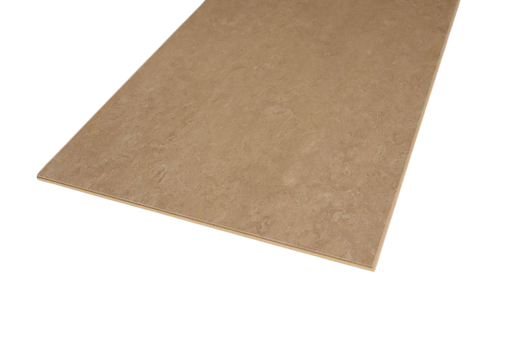 Linoleumsfliserne er opbygget med 2 mm. korkbagside, 6,8 mm. HDF mellemlag og 1,2 mm. slidstærk linoleum toplag. Pga. korkbagsiden skal der ikke monteres yderligere underlag under gulvet, kun dampspærre hvor det er nødvendigt.